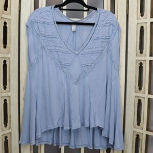 Free People Abigail Lace Oversized Boho Swing Tee Drapey Blouse