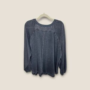 Free People Acadia Washed Black Long Sleeve Henley Top Size XS