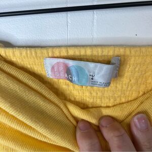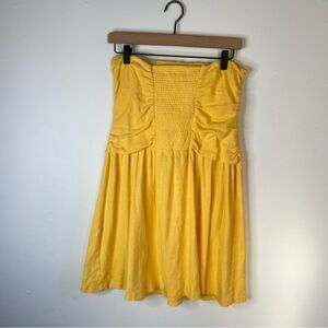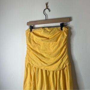 Excellent condition. Beach dress, swim cover up, butter yellow, goldenrod, strapless dress, ruched top with stretch in back