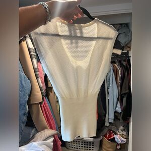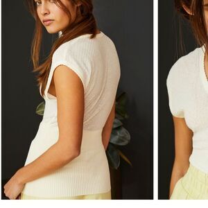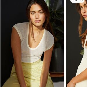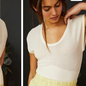 A baby tee with a twist, this slim-fitting style features a mixed knit design with a ribbed bodice and scoop neckline.