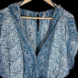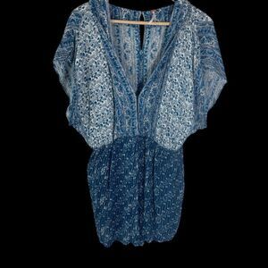 Free People Arizona Women's Rayon Romper Blue/White Sz M