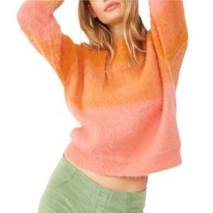 The variegated stripes of a beautiful sunrise define a cozy crewneck sweater sure to brighten any day you wear it.