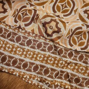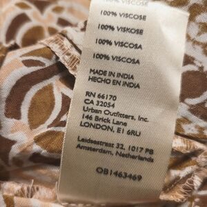 NWOT. Ties in the front. Side zipper closure. 100% Viscose. Colors are Brown, Tan, White, Peach. Waist measurements laying flat is 13.5 inches. Length is 15 inches. Pls see pictures for details. Thank you