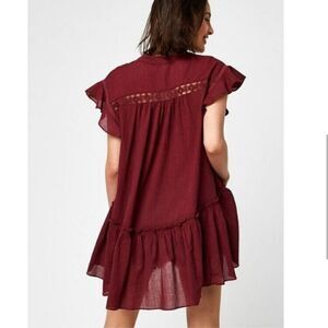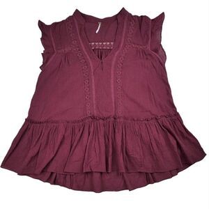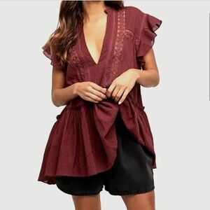 Free People Baby Blues Lace Trim Tunic Maroon Red