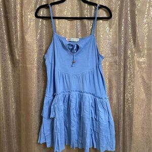 Free People Beach Noelle Light Blue Tiered Mini Dress XS NWOT