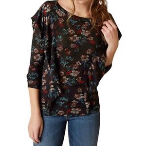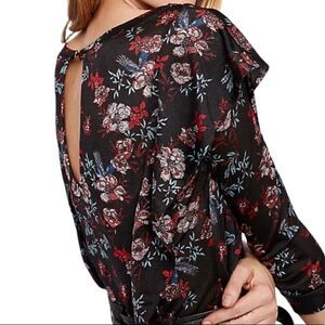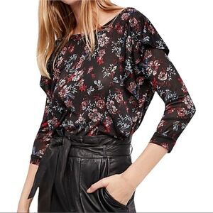 Free People Black Dock Street Floral Printed Blouse in the Size Medium