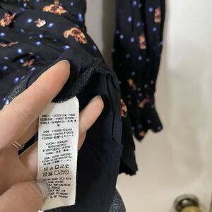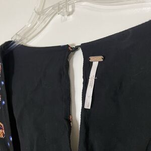 Free People Black Floral Star-Print Smocked long sleeve Mini Dress Size Small