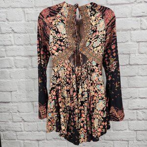 Free People Black Multi Boho Bell Sleeve Stevie Tunic Mini Dress Extra Small