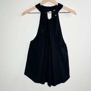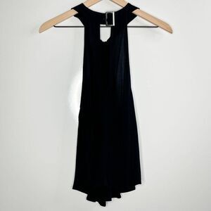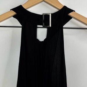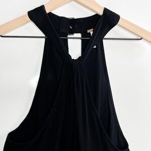 Crossover halter neckline, flattering drape, supersoft, skin-baring keyholes in front and back, back buckle closure
