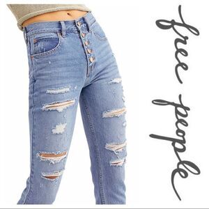 Free People Blossom Rigid Skinny Jeans OB901610 REGULAR HIGH RISE BUTTON FLY 26
