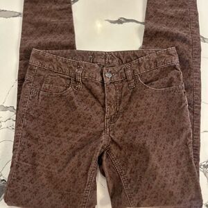 Stylish brown jeans with subtle pattern. Slim fit design. Perfect for casual wear.