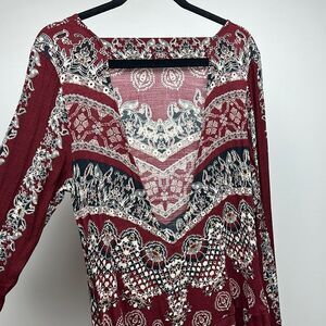 Bohemian style with intricate patterns. Long sleeves. Flowy fit.