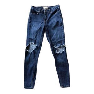 Free People Busted Knee Dark Blue Skinny Jeans Size 25
