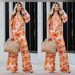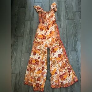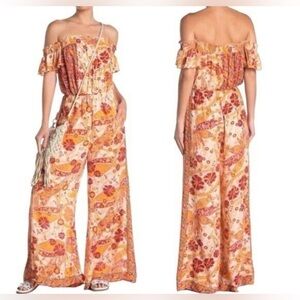 Free People|Carmen Jumpsuit,Boho floral wide leg jumpsuit-off the shoulders•••
