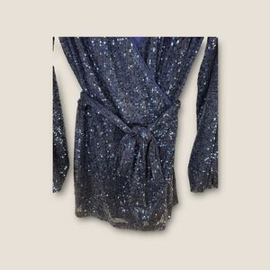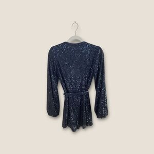 Free People Christa Sequin Romper in Blue NWT Size XS