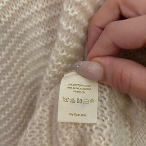 Free People Cotton Alpaca Oversized Cream Knit V Neck Long Sleeve Sweater XS
