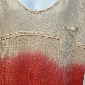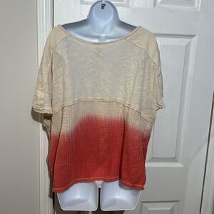Free People Cream Pink Sun Dial Dip Dye Thermal Boxy Top Womens Size M