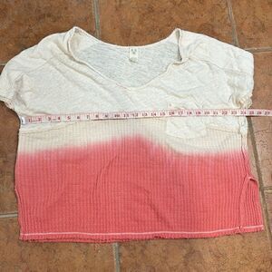 Free People Cream Pink Sun Dial Dip Dye Thermal Boxy Top Womens Size M in great condition.