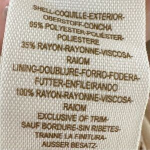 • Material: Shell – 65% Polyester, 35% Rayon; Lining – 100% Rayon