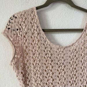 Free People Crochet Lace Bodycon Mini Dress M Scoop Neck Beige Y2K Boho Hippie
