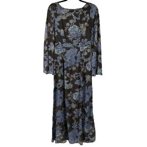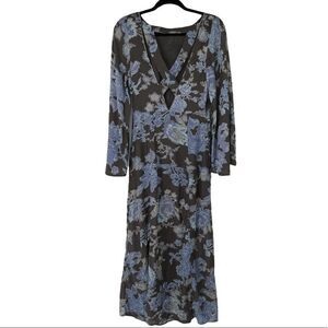 Free People Dark Gray Blue Floral Long Sleeve Maxi Dress