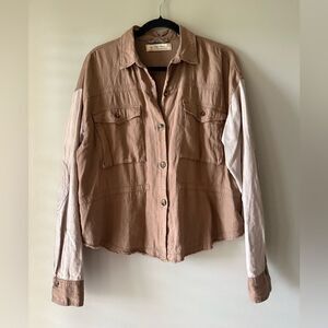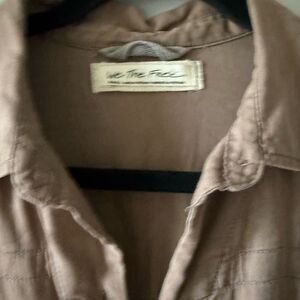 Stylish two-tone button-up shirt by Free People. Features brown and cream colors. Perfect for casual wear.