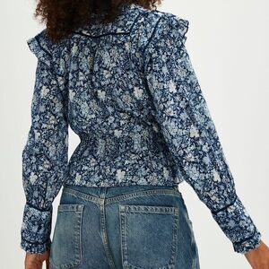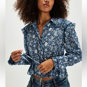 Free People Daybreak Floral Printed Blouse in Chambray Combo