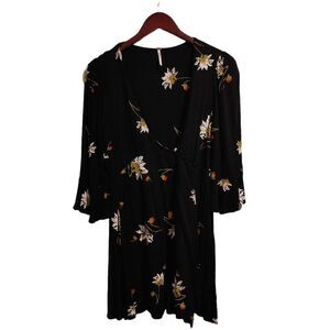 The Free People Time On My Side Black Floral Print Wrap Dress is a timeless classic!