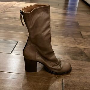 Leather is beautifully soft and photos do not do these boots justice. Very comfortable and easy to wear with jeans, leggings, dresses and more.