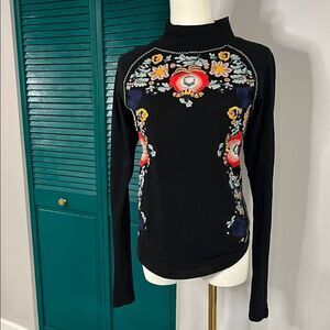 Free People Embroidered Black Floral Women's mock turtleneck- small