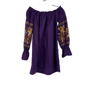 Free People Fleur De Jour Mini Dress Purple Off Shoulder Floral Embroidered XS