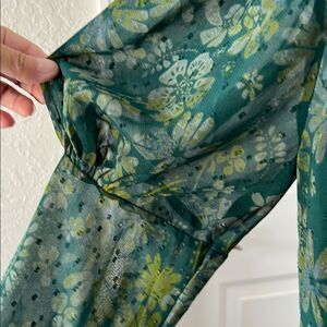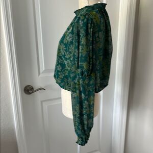 Free People Floral Green Ruffled Blouse with Mandarin Collar Crop Back Tie