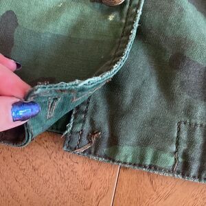 Oversized slouchy camo military jacket with patch front pockets and adjustable