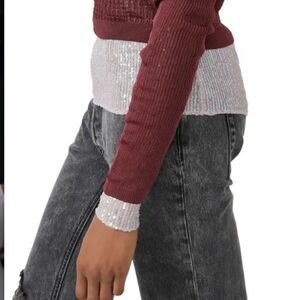Free People H20 Crewneck Sweater in Raw Garnet BNWT
