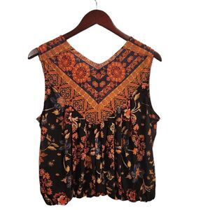 Free People Havana Black Floral Print Sleeveless Surplice Top Small