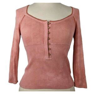 Free People Henley Shirt Top Women's XS Pink Peach Tie-Dye Cropped Scoop-Neck
