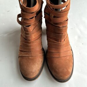 Free People Hybrid Ankle Boots Women's 41 / 10 Brown Nubuck Strappy Boho Booties