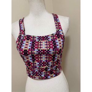 So supportive and ready for anything, this printed square neck sports bra was designed for high-impact activities with a snug and compressive fit and a bold strappy back* Supportive under bust elastic* Four-way stretch* Sweat-wicking fabric