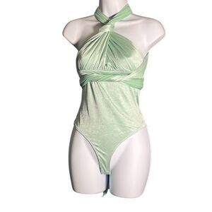 Turn heads in this gorgeous Free People Intimately 100 Ways Bodysuit in the dreamy Sky Mist / Mint Green color. Designed with ultra-soft, stretchy velvet-like fabric and endless styling options—wear it criss-cross, halter, one-shoulder, or wrap-tie it your way! Perfect for festivals, layering, nights out, or adding a boho-chic vibe to your wardrobe. Brand new with tags, Size Medium.