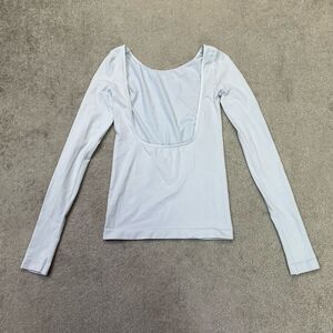 Free People Intimately Womens Low Back Seamless Long Sleeve Tee Sky Blue XS NWOT