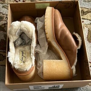 Free People James Cozy Leather Chinky Platform Mule Faux Shearling NWT SZ 40/10