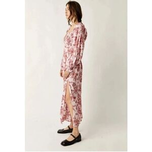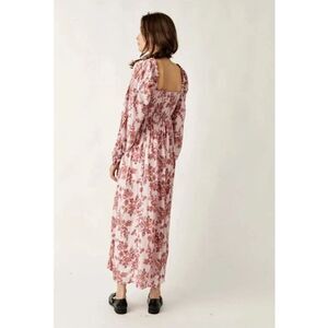 Free People Jaymes Floral Print Square Neck Long Sleeves Midi Dress Size XS Smocked