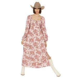 Free People Jaymes Floral Print Square Neck Long Sleeves Midi Dress Size XS Smoc