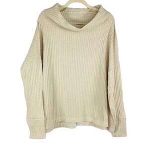 Color stone cold /Beige. Relaxed Oversized fit. Boho Style. Foldover Cowl Neck. Long Sleeves. Dropped Shoulders. Surplice split back. Stretchy thermal/waffle knit fabrication. Not lined