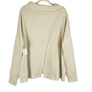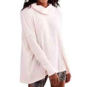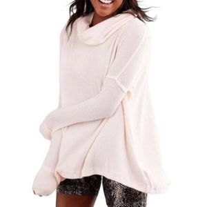 Free People Juicy Cowl Neck Split Back Thermal Knit Top Tunic Oversize Stretch