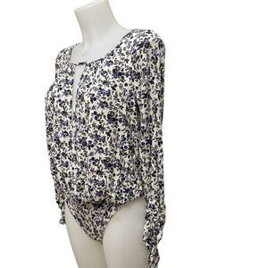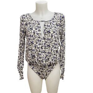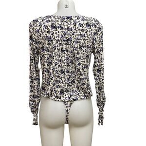 Free People Kaya Printed Floral Bodysuit, longsleeves ivory combo size XS new!