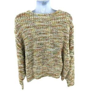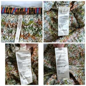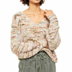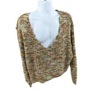 Free People Large Oversized Highland Sweater Knit Multicolor V-Neck Neutral toned yarn. Cream, tans, and greens. New with tag from Peter Harris Shopping Label Store not Free People store. Peter Harris is kind of like a TJ Maxx Marshals but smaller. They are spread out the USA. Sweater has some oversized holes where the holes sections are and on one of the shoulder. I tried it on and because of it's over size and don't really notice them. No Stains. Comes from smoke free environment.