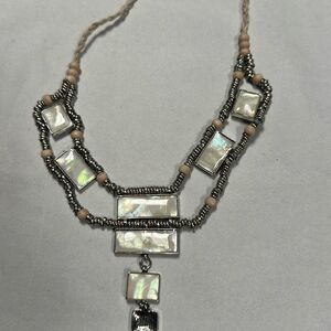 Free People Lately Women's Bib Dangle Necklace Abalone Silver Rope Beaded