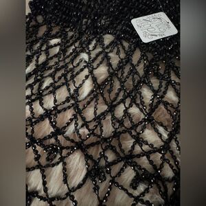 Features: Open-knit with beaded embellishments allover, sheer-style, round neckline, cropped length
