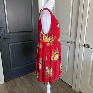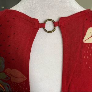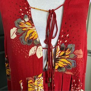 Free People Lovely Day Red Printed Tunic Boho Style Mini Dress Size S